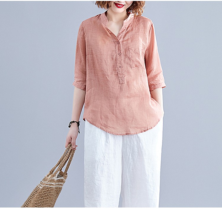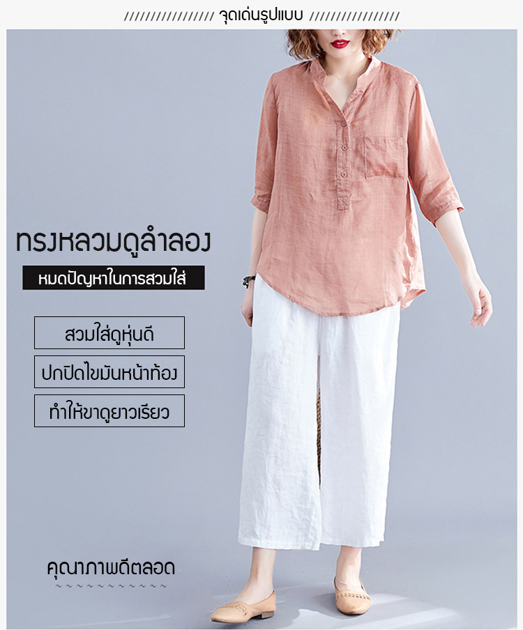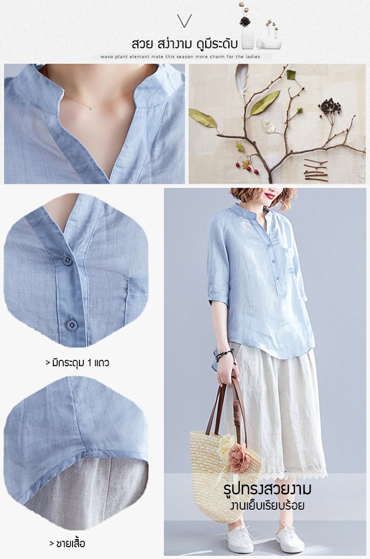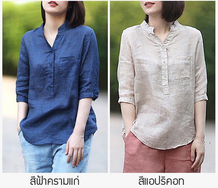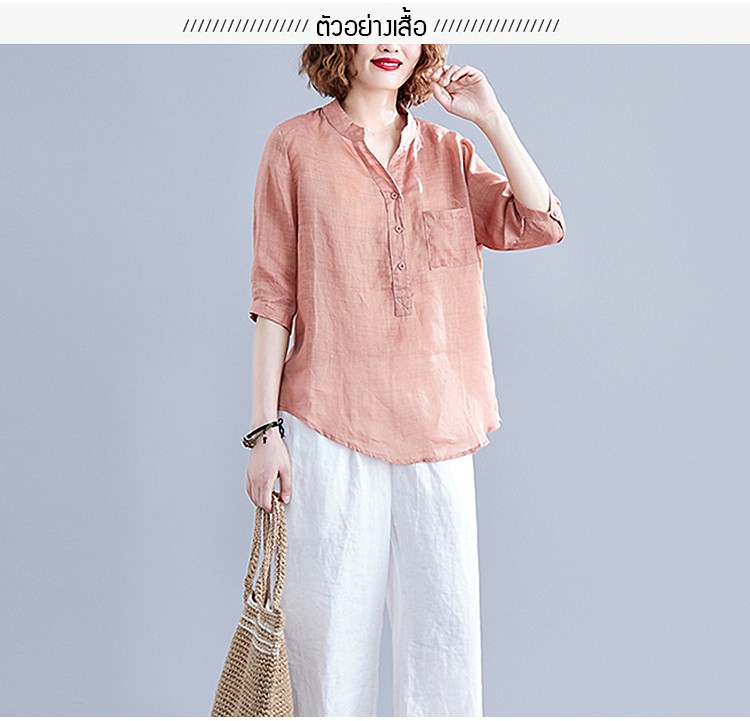 เสื้อเชิ้ตผ้าคอตตอนลินินแขน 7 ส่วน