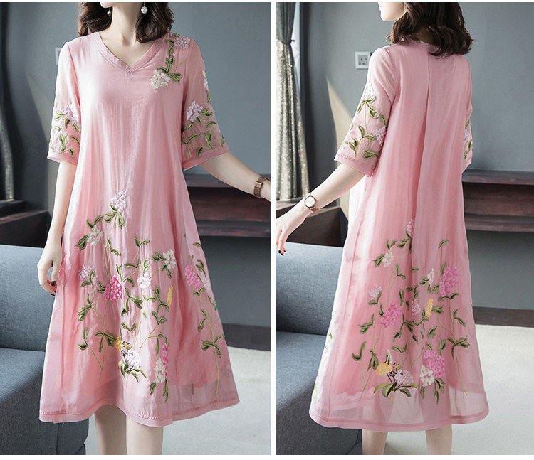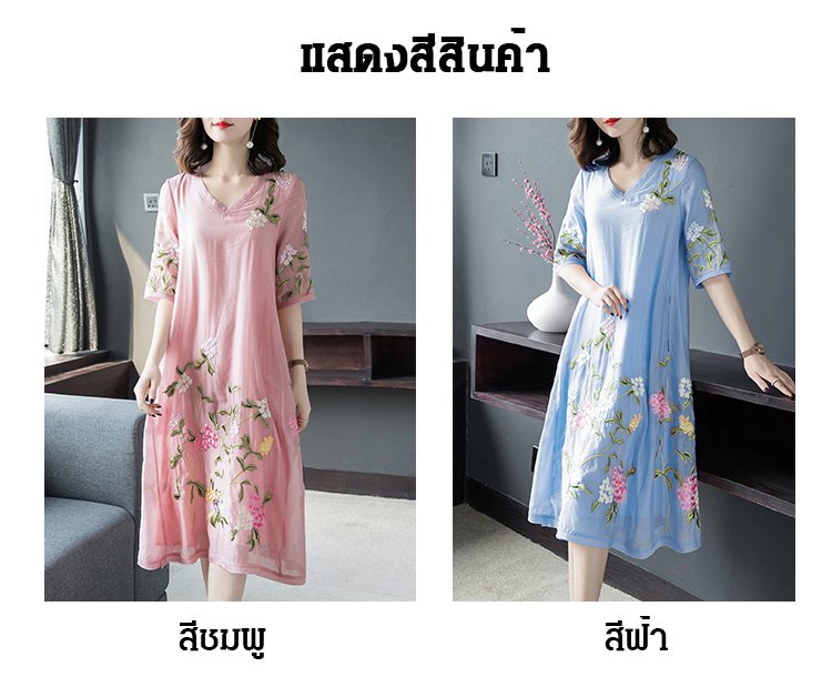 ชุดเดรสปักลายทรงหลวมไซส์ใหญ่