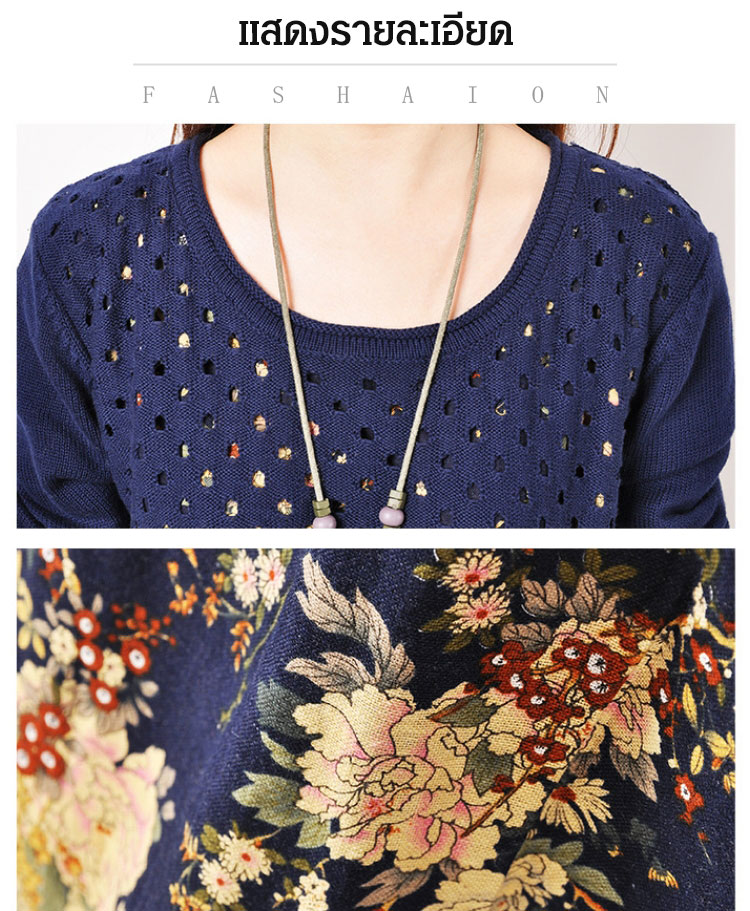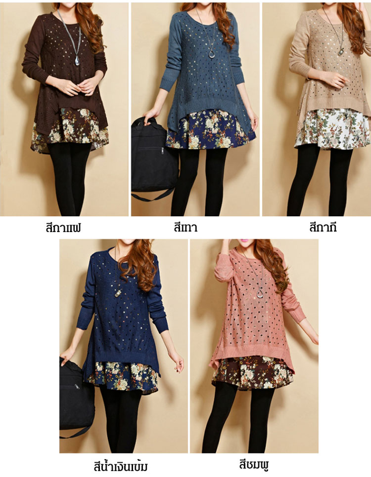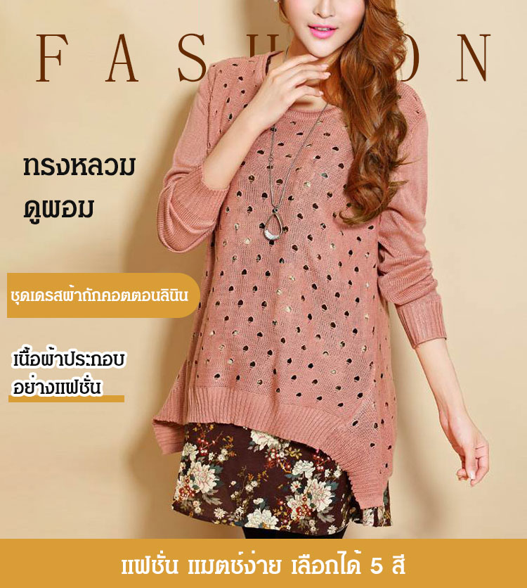 ชุดเดรสผ้าถักคอตตอนลินิน